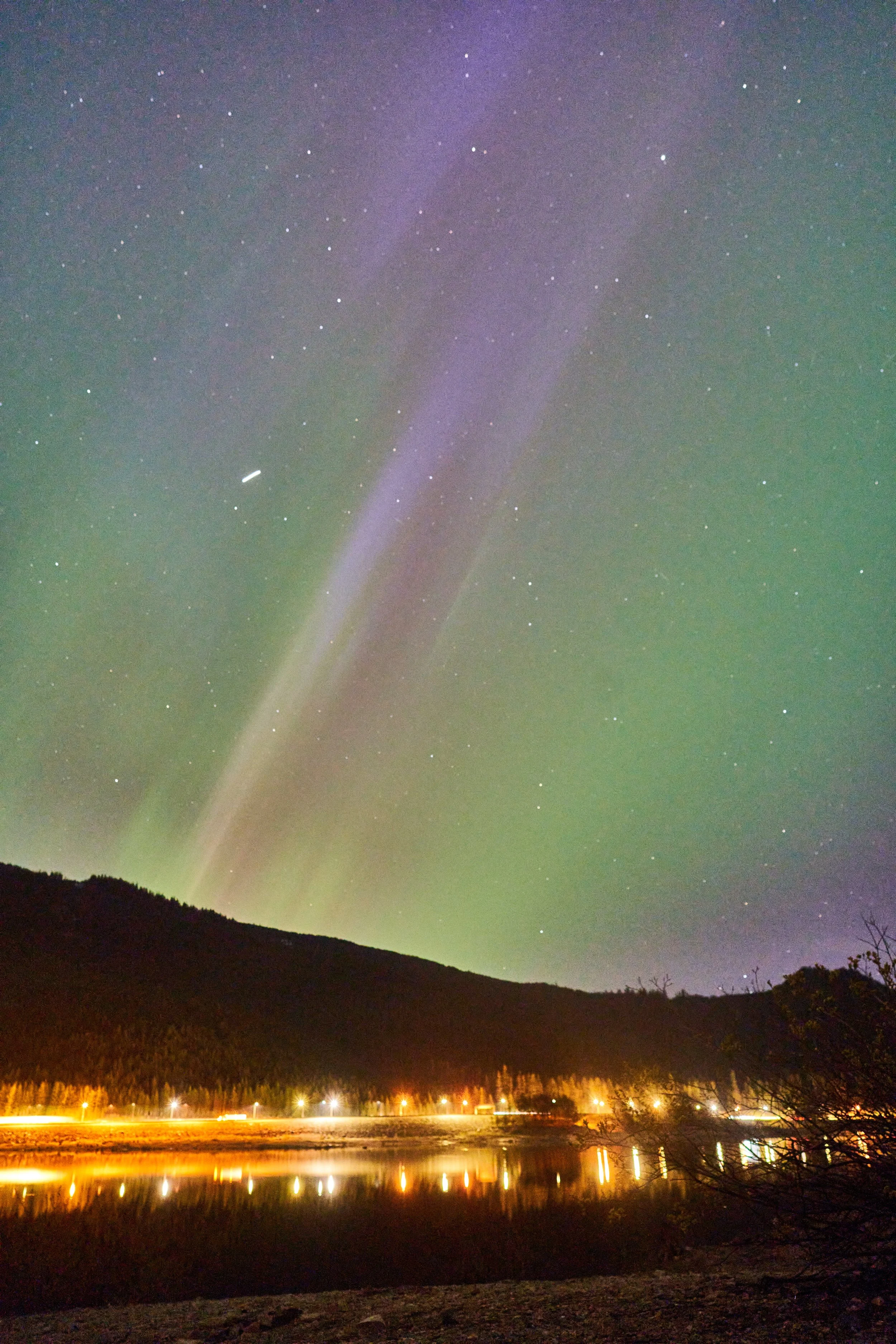 Back at the small lake, a nearly imperceptible amount of light cascaded about a hillside to the northeast. It was a modest showing. Not much color, more like a bright spot in the sky. Some light green could be seen through the lenses of nicer cameras but it wasn’t particularly spectacular… and so the waiting continued.